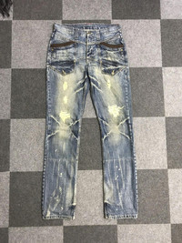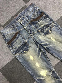 🔔Offer me a price, willing to negotiate🕭 🔹Size in inch(es) Waist :31-32 Outseam :44 Inseam :33.5 Front Rise :11 Thigh :11.5 Knee :7.75 Leg Opening : 7.25 🔹Type of Cut : Slim 🔹Condition :8.75/10 🔹Material : Denim 🔹Defect : none..distressed style -Please dont hesitate to ask if you have any question. ☡ATTENTION:☡ -An item that has been used or worn previously. Sold as is -See Our listing for full details and description of any imperfections. No refund. -Please don't expect it to be like new or in pristine condition -Please pay close attention to measurements provided. All measurement are taken while laying flat and relaxed(no stretch & no pressure on buttons).Need more photos of measurement ,please ask. -Do not rely on tag size as pre-worn items may have been altered, stretched or shrunk & vintage sizes do not directly translate the modern sizes.The best way to ensure a correct fit is to compare our measurements with the measurements of a similar item that you know fits you well.Please enlarge the photos for clearer image..Due to amateur measurement,please allow plus/minus 0.5 inch accuracy. -For special cut garment ,please refer photos of measurement. PAYMENT And SHIPPING: ■ Accept \"PAYPAL\" only ■ Item above $100 will be shipped via DHL Express and below $100 will be shipped via Standard International Shipping. Or if your price is lower than $100 but urgently need the item ,please add another $25.i will arrange the best shipping company.Tracking Number will be provided. ◾️25USD charge on after sale cancellation. ■Expected Shipping period takes within 3-5 days via DHL Express and Standard International Shipping within 2-3 weeks to arrived to its destination around the world.No shipping to Israel. Don't Worry About Customs Tax or Fees. I usually Declare all Items as 'Gift' & Declare Value of Item Lower than Original Price. All Items are Sold \"AS IS\" so Please be Sure to Read The Entire Description and Look at All The Pictures. Pleased doing business with you mate
