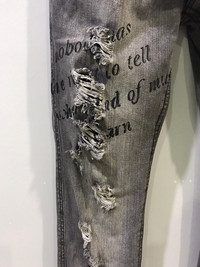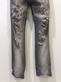 🔔Offer me a price, willing to negotiate🕠🔹Size in inch(es) Waist : 32 Outseam : 43.5 Inseam : 34 Rise : 10.5 Thigh : 10 Knee : 8 Cuff : 8 🔹Condition : Physical - 9/10..distressed design Visual - 9/10...purposely faded made 🔹Colour : faded Black 80s style 🔹Made in : China 🔹Material : cotton 🔹Defect : Physical - 1 spike button at right back pocket gone missing Visual - none -Please dont hesitate to ask me for more pictures and measurement. ☡ATTENTION:☡ -An item that has been used or worn previously. -See Our listing for full details and description of any imperfections. -Please don't expect it to be like new or in pristine condition -Please pay close attention to measurements provided. -Do not rely on tag size as pre-worn items may have been altered, stretched or shrunk & vintage sizes do not directly translate the modern sizes.The best way to ensure a correct fit is to compare our measurements with the measurements of a similar item that you know fits you well.Please enlarge the photos for clearer image PAYMENT And SHIPPING: ■Accept "PAYPAL" only ■Item above $100 will be shipped via DHL Express and below $100 will be shipped via Standard International Shipping. Or if your price is lower than $100 but urgently need the item ,please add another $25.i will arrange the best shipping company.Tracking Number will be provided.No Shipping to Israel. ■Expected Shipping period takes within 3-5 days via DHL Express and Standard International Shipping within 2-3 weeks to arrived to its destination around the world. Don't Worry About Customs Tax or Fees. I usually Declare all Items as 'Gift' & Declare Value of Item Lower than Original Price. All Items are Sold "AS IS" so Please be Sure to Read The Entire Description an Look At All Pictures. Pleased doing business with you mate