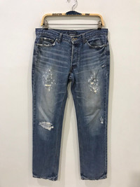 🔔Offer me a price, willing to negotiate🕭 🔹Size in inch(es) on tag 4 Waist :33 Outseam :42.5 Inseam :33 Front Rise :9.75 Thigh :11 Knee :8.5 Leg Opening : 8 🔹Type of Cut : Slim 🔹Condition : 8.75/10 🔹Made in : Japan 🔹Material : cotton 🔹Defect :none..distressed design -Please dont hesitate to ask if you have any question. ☡ATTENTION:☡ -An item that has been used or worn previously. Sold as is -See Our listing for full details and description of any imperfections. No refund. -Please don't expect it to be like new or in pristine condition -Please pay close attention to measurements provided. All measurement are taken while laying flat and relaxed(no stretch & no pressure on buttons).Need more photos of measurement ,please ask. -Do not rely on tag size as pre-worn items may have been altered, stretched or shrunk & vintage sizes do not directly translate the modern sizes.The best way to ensure a correct fit is to compare our measurements with the measurements of a similar item that you know fits you well.Please enlarge the photos for clearer image..Due to amateur measurement,please allow plus/minus 0.5 inch accuracy. -For special cut garment ,please refer photos of measurement. PAYMENT And SHIPPING: ■ Accept \"PAYPAL\" only ■ Item above $100 will be shipped via DHL Express and below $100 will be shipped via Standard International Shipping. Or if your price is lower than $100 but urgently need the item ,please add another $25.i will arrange the best shipping company.Tracking Number will be provided. ◾️25USD charge on after sale cancellation. ■Expected Shipping period takes within 3-5 days via DHL Express and Standard International Shipping within 2-3 weeks to arrived to its destination around the world.No shipping to Israel. Don't Worry About Customs Tax or Fees. I usually Declare all Items as 'Gift' & Declare Value of Item Lower than Original Price. All Items are Sold \"AS IS\" so Please be Sure to Read The Entire Description and Look at All The Pictures. Pleased doing business with you mate