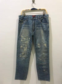 🔔Offer me a price, willing to negotiate🕠🔹Size in inch(es)/cm(s) Waist :34 Outseam :41.5 Inseam :32 Rise :11 Thigh :12 Knee :9 Leg Opening : 8 🔹Condition : 8/10 🔹Colour : faded blue denim 🔹Made in : China 🔹Material : cotton 🔹Defect : please refer photos..just minor defect -Please dont hesitate to ask me for more pictures. ☡ATTENTION:☡ -An item that has been used or worn previously. -See Our listing for full details and description of any imperfections. -Please don't expect it to be like new or in pristine condition -Please pay close attention to measurements provided. -Do not rely on tag size as pre-worn items may have been altered, stretched or shrunk & vintage sizes do not directly translate the modern sizes.The best way to ensure a correct fit is to compare our measurements with the measurements of a similar item that you know fits you well.Please enlarge the photos for clearer image PAYMENT And SHIPPING: ■Accept \"PAYPAL\" only ■Item above $100 will be shipped via DHL Express and below $100 will be shipped via Standard International Shipping. Or if your price is lower than $100 but urgently need the item ,please add another $25.i will arrange the best shipping company.Tracking Number will be provided. ■Expected Shipping period takes within 3-5 days via DHL Express and Standard International Shipping within 2-3 weeks to arrived to its destination around the world.No shipping to Israel. Don't Worry About Customs Tax or Fees. I usually Declare all Items as 'Gift' & Declare Value of Item Lower than Original Price. All Items are Sold \"AS IS\" so Please be Sure to Read The Entire Description and Look at All The Pictures. Pleased doing business with you mate