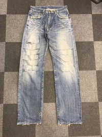 🔔Offer me a price, willing to negotiate🕠🔹Size in inch(es) Waist :31 Outseam : 46 Inseam : 34.5 Front Rise : 12 Thigh: 13.5 Knee: 10 Hem: 9 🔹Condition : 7/10 🔹Colour : Denin 🔹Made in : Japan 🔹Material : Cotton 🔹Defect: please refer all photos -Please dont hesitate to ask me for more pictures. ☡ATTENTION:☡ -An item that has been used or worn previously. sold as is. -See Our listing for full details and description of any imperfections. No refund. -Please don't expect it to be like new or in pristine condition -Please pay close attention to measurements provided. Size will be tagged as on tag.It is your responsibility to know your size based on manual measurement.. -Do not rely on tag size as pre-worn items may have been altered, stretched or shrunk & vintage sizes do not directly translate the modern sizes.The best way to ensure a correct fit is to compare our measurements with the measurements of a similar item that you know fits you well..Due to this is amateur measurement,please allow plus/minus 0.7 inch accuracy..Please enlarge the photos for clearer image PAYMENT And SHIPPING: ■Accept \\\"PAYPAL\\\" only ■Item above $100 will be shipped via DHL Express and below $100 will be shipped via Standard International Shipping. Or if your price is lower than $100 but urgently need the item ,please add another $25.i will arrange the best shipping company.Tracking Number will be provided. ■Expected Shipping period takes within 3-5 days via DHL Express and Standard International Shipping within 2-3 weeks to arrived to its destination around the world.No shipping to ISRAEL & RUSSIA Don't Worry About Customs Tax or Fees. I usually Declare all Items as 'Gift' & Declare Value of Item Lower than Original Price. All Items are Sold \\\"AS IS\\\" so Please be Sure to Read The Entire Description and Look at All The Pictures. Pleased doing business with you mate