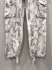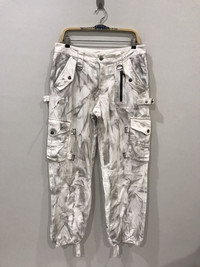 🔔Offer me a price, willing to negotiate🕭 🔹Size in inch(es) on tag 2 Waist : 33 Outseam : 42.5 Inseam : 31.5 Front Rise : 10 Thigh :12 Knee :10 Leg Opening : 8(got drawstring) 🔹Type of Cut : Regular 🔹Condition : 9/10 🔹Colour : White Smoky Spray Effect 🔹Made in : China 🔹Material : Cotton 🔹Defect : refer the last photo -Please dont hesitate to ask if you have any question. ☡ATTENTION:☡ -An item that has been used or worn previously. -See Our listing for full details and description of any imperfections. No refund. -Please don't expect it to be like new or in pristine condition -Please pay close attention to measurements provided. All measurement are taken while laying flat and relaxed(no stretch & no pressure on buttons).Need more photos of measurement ,please ask. -Do not rely on tag size as pre-worn items may have been altered, stretched or shrunk & vintage sizes do not directly translate the modern sizes.The best way to ensure a correct fit is to compare our measurements with the measurements of a similar item that you know fits you well.Please enlarge the photos for clearer image..Due to amateur measurement,please allow plus/minus 0.5 inch accuracy. -For special cut garment ,please refer photos of measurement. PAYMENT And SHIPPING: ■ Accept \"PAYPAL\" only ■ Item above $100 will be shipped via DHL Express and below $100 will be shipped via Standard International Shipping. Or if your price is lower than $100 but urgently need the item ,please add another $25.i will arrange the best shipping company.Tracking Number will be provided. ◾️25USD charge on after sale cancellation. ■Expected Shipping period takes within 3-5 days via DHL Express and Standard International Shipping within 2-3 weeks to arrived to its destination around the world.No shipping to Israel. Don't Worry About Customs Tax or Fees. I usually Declare all Items as 'Gift' & Declare Value of Item Lower than Original Price. All Items are Sold \"AS IS\" so Please be Sure to Read The Entire Description and Look at All The Pictures. Pleased doing business with you mate