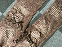 CP232 JEANS D ART Rare Design Wavy Fades Baggy Cargo Jeans 🔔Offer me a price, willing to negotiate🕭 🔹Size in inch(es) Waist : 36 Outseam : 41.5 Inseam : 33 Front Rise:9.5 Thigh : 12.5 Knee : 9.75 Leg Opening:10 🔹Type of Cut: Baggy 🔹Colour: Brown 🔹Condition : 9.25/10 🔹Material : Denim 🔹Defect : None -Please dont hesitate to ask if you have any question. ☡ATTENTION:☡ -An item that has been used or worn previously. Sold as is -See Our listing for full details and description of any imperfections. No refund. -Please don't expect it to be like new or in pristine condition -Please pay close attention to measurements provided. All measurement are taken while laying flat and relaxed(no stretch & no pressure on buttons).Need more photos of measurement ,please ask. -Do not rely on tag size as pre-worn items may have been altered, stretched or shrunk & vintage sizes do not directly translate the modern sizes.The best way to ensure a correct fit is to compare our measurements with the measurements of a similar item that you know fits you well.Please enlarge the photos for clearer image..Due to amateur measurement,please allow plus/minus 0.5 inch accuracy. -For special cut garment ,please refer photos of measurement. PAYMENT And SHIPPING: ■ Accept \"PAYPAL\" only ■ Item above $100 will be shipped via DHL Express and below $100 will be shipped via Standard International Shipping. Or if your price is lower than $100 but urgently need the item ,please add another $25.i will arrange the best shipping company.Tracking Number will be provided. ◾️25USD charge on after sale cancellation. ■Expected Shipping period takes within 3-5 days via DHL Express and Standard International Shipping within 2-3 weeks to arrived to its destination around the world.No shipping to Israel. Don't Worry About Customs Tax or Fees. I usually Declare all Items as 'Gift' & Declare Value of Item Lower than Original Price. All Items are Sold \"AS IS\" so Please be Sure to Read The Entire Description and Look at All The Pictures. Pleased doing business with you mate