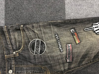 D129 PEACE TO MARS Japan Street Style Patches Flare Jeans 🔔Offer me a price, willing to negotiate🕭 🔹Size in inch(es) Waist : 34 Outseam : 43.5 Inseam : 35 Front Rise:10.25 Thigh : 10.75 Knee : 8 Leg Opening:9 🔹Type of Cut: Flare 🔹Colour: Black 🔹Condition : 9/10 🔹Material : Cotton 🔹Defect : please refer photos -Please dont hesitate to ask if you have any question. ☡ATTENTION:☡ -An item that has been used or worn previously. Sold as is -See Our listing for full details and description of any imperfections. No refund. -Please don't expect it to be like new or in pristine condition -Please pay close attention to measurements provided. All measurement are taken while laying flat and relaxed(no stretch & no pressure on buttons).Need more photos of measurement ,please ask. -Do not rely on tag size as pre-worn items may have been altered, stretched or shrunk & vintage sizes do not directly translate the modern sizes.The best way to ensure a correct fit is to compare our measurements with the measurements of a similar item that you know fits you well.Please enlarge the photos for clearer image..Due to amateur measurement,please allow plus/minus 0.5 inch accuracy. -For special cut garment ,please refer photos of measurement. PAYMENT And SHIPPING: ■ Accept \"PAYPAL\" only ■ Item above $100 will be shipped via DHL Express and below $100 will be shipped via Standard International Shipping. Or if your price is lower than $100 but urgently need the item ,please add another $25.i will arrange the best shipping company.Tracking Number will be provided. ◾️25USD charge on after sale cancellation. ■Expected Shipping period takes within 3-5 days via DHL Express and Standard International Shipping within 2-3 weeks to arrived to its destination around the world.No shipping to Israel. Don't Worry About Customs Tax or Fees. I usually Declare all Items as 'Gift' & Declare Value of Item Lower than Original Price. All Items are Sold \"AS IS\" so Please be Sure to Read The Entire Description and Look at All The Pictures. Pleased doing business with you mate