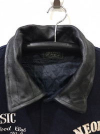 🔔Offer me a price, willing to negotiate🕠🔹Size in inch(es) on tag F Shoulder to shoulder :23 Armpit to armpit : 24.5 Lenght : 26 Sleeve Lenght : 22 🔹Condition : 8/10 🔹Colour : Black Navy 🔹Made in :Korea 🔹Material :Wool Leather 🔹Defect:please refer photos -Please dont hesitate to ask me for more pictures. ☡ATTENTION:☡ -An item that has been used or worn previously. sold as is. -See Our listing for full details and description of any imperfections. No refund. -Please don't expect it to be like new or in pristine condition -Please pay close attention to measurements provided. Size will be tagged as on tag.It is your responsibility to know your size based on manual measurement.. -Do not rely on tag size as pre-worn items may have been altered, stretched or shrunk & vintage sizes do not directly translate the modern sizes.The best way to ensure a correct fit is to compare our measurements with the measurements of a similar item that you know fits you well..Due to this is amateur measurement,please allow plus/minus 0.7 inch accuracy..Please enlarge the photos for clearer image PAYMENT And SHIPPING: ■Accept \"PAYPAL\" only ■Item above $100 will be shipped via DHL Express and below $100 will be shipped via Standard International Shipping. Or if your price is lower than $100 but urgently need the item ,please add another $25.i will arrange the best shipping company.Tracking Number will be provided. ■Expected Shipping period takes within 3-5 days via DHL Express and Standard International Shipping within 2-3 weeks to arrived to its destination around the world.No shipping to ISRAEL & RUSSIA Don't Worry About Customs Tax or Fees. I usually Declare all Items as 'Gift' & Declare Value of Item Lower than Original Price. All Items are Sold \"AS IS\" so Please be Sure to Read The Entire Description and Look at All The Pictures. Pleased doing business with you mate