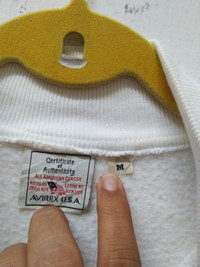 Big logo embroidery Avirex white colour come with good used condition . No any flaws at all.ONLY MINOR STAIN DUE TO SIGN OF USAGE CAN REFER LAST PHOTO .Made in China Please check the measurement carefully as it is the item actual fit. MEASUREMENT: Armpit to armpit : 22.5inch. Shoulder to hem: 26inch. (All measurements were taken lying flat) PAYMENT: Paypal Only. Item will be shipped within 1-3 working days after the payment received. Tracking number will be provide.
