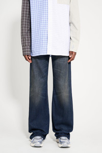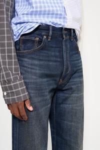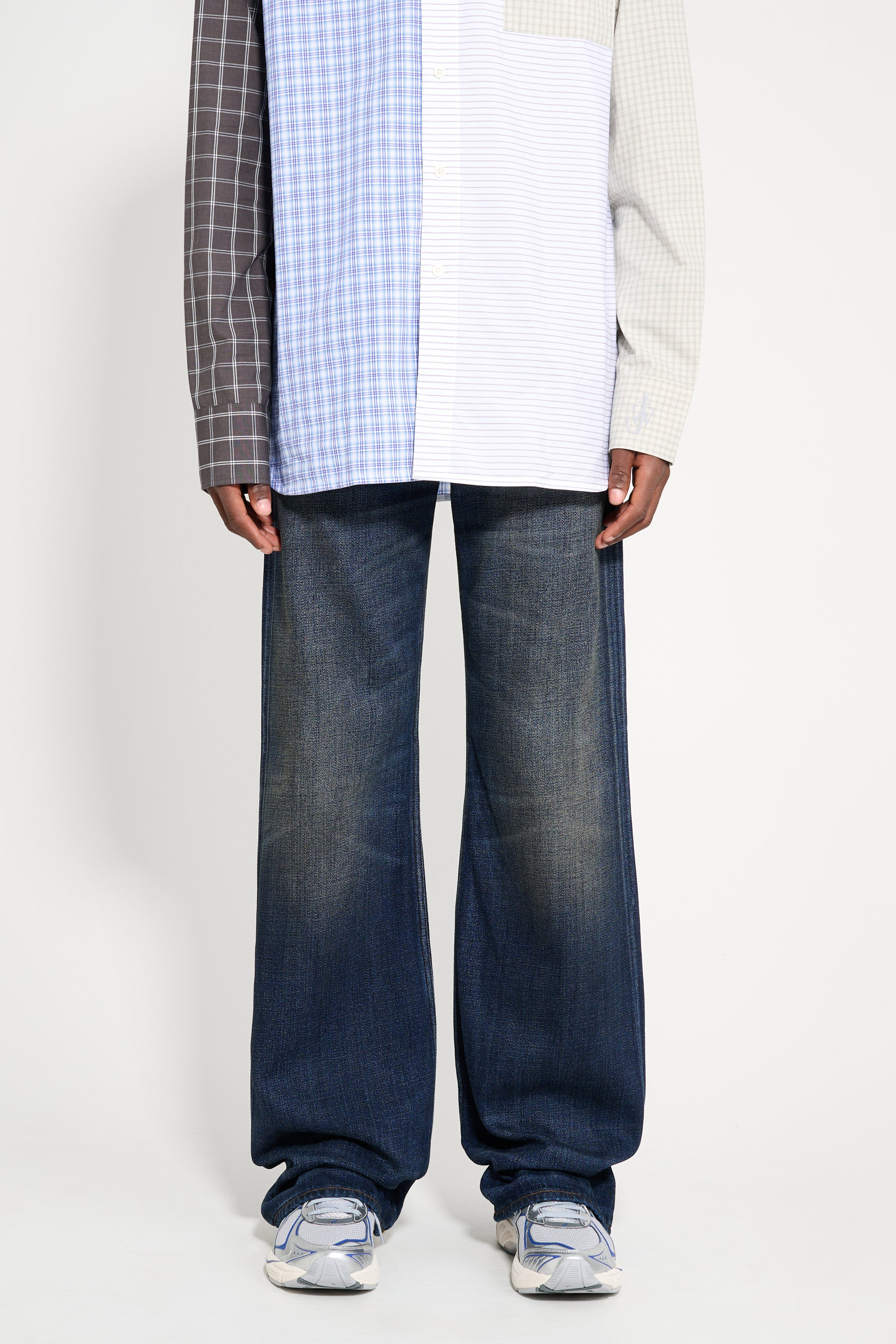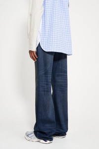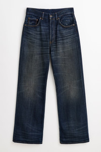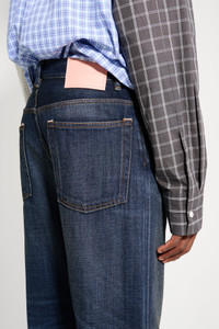 Jeans from Acne Studios. Made in Italy from soft denim twill with natural whiskers and a dirty tint. Mid waist, wide leg, and long length. Five-pocket design with button fly. Belt loops, branded metal rivets, tonal stitching, and a branded leather patch at the back. Details Dark blue jeans. Made in Italy from 100% cotton. 100% cow leather patch. Metal rivets.ART. NO: B00422-838 Size & fit Loose fit. Model wears a size 29/34 and measures 185 cm with a 69 cm waist.