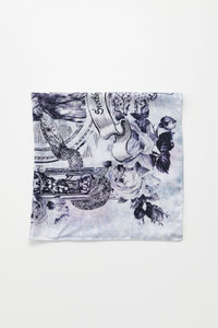 Scarf from Acne Studios. Made in Italy from lightweight silk with a seasonal branded animation print. Features a square shape and 'Stockholm 1996' lettering. Details Denim blue printed scarf. Made in Italy from 100% silk.ART. NO: CA0359-AAL Size & fit Square scarf. Measures 90 x 90 cm.