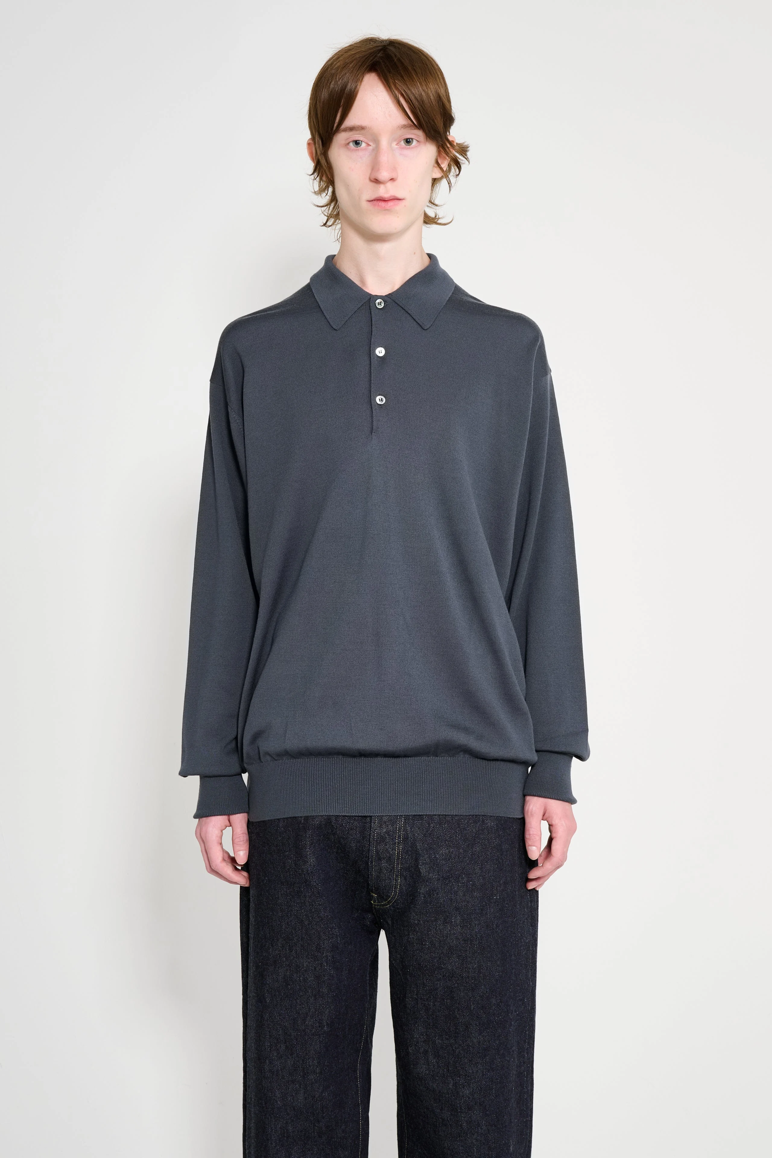 Sweater from A.PRESSE. Made in Japan from premium 14.5 microns, Super 170's quality wool. Long-sleeved polo design, combining classic British high-gauge knit construction with sports polo details. Features a relaxed fit, well-proportioned collar, and tightly knitted ribbing at cuffs and hem for a structured silhouette. Details Grey sweater. Made in Japan from 100% wool.ART. NO: 25AAP-03-08 Size & fit Model wears a size 3 and measures 184 cm with a 79 cm chest.