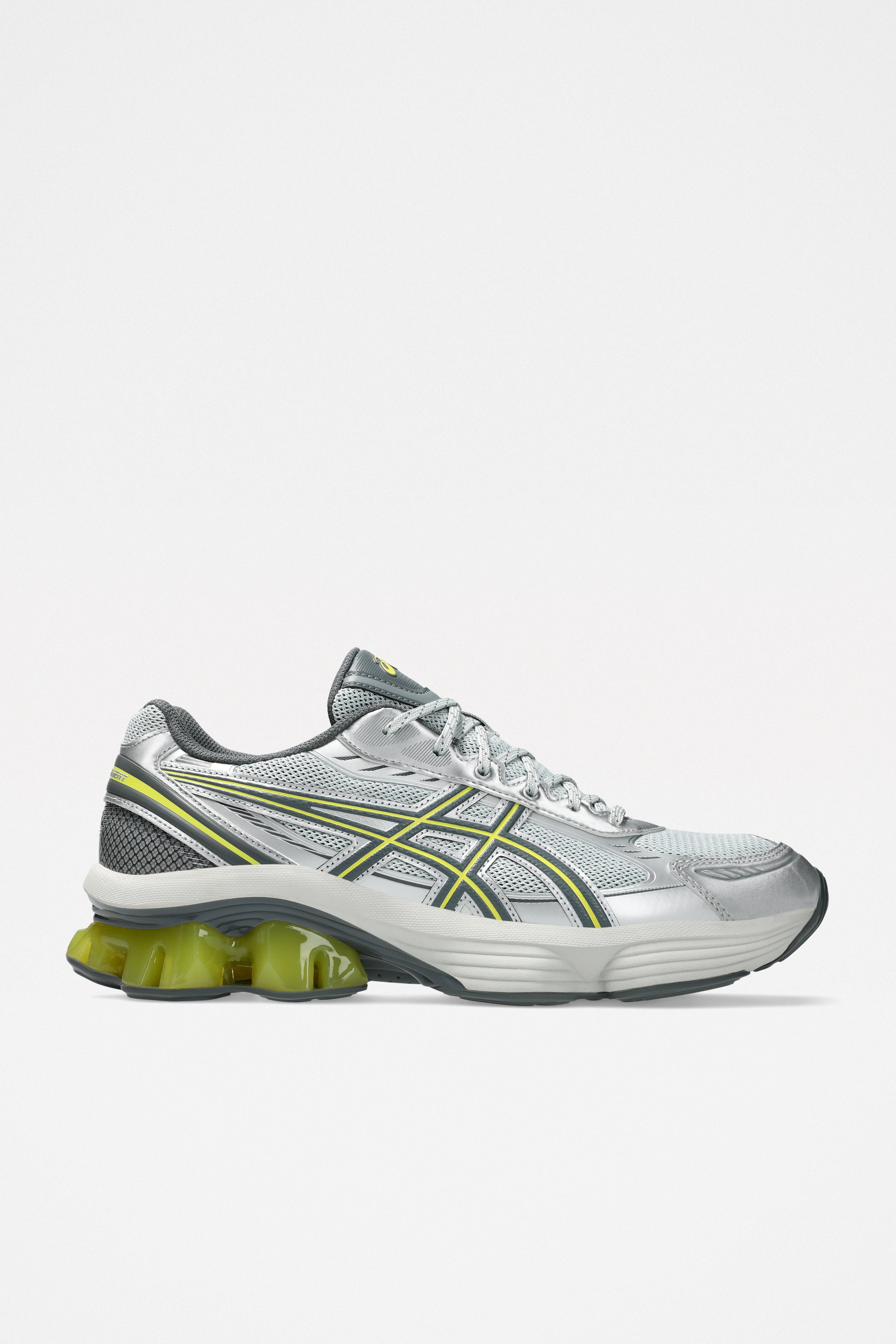 Sneakers from Asics. Mesh net uppers with synthetic leather overlays. Padded heel, collar, and tongue with mesh lining. Reinforced heel counter with embossed GEL logo. Flat padded two-tone woven laces. Rubber logo patch and lace holder on the tongue. Ortholite insoles and GEL™ technology midsoles with FF BLAST™ foam. Translucent gel panels around the heel on the outsole. Details Grey and yellow sneakers. Made in Vietnam. Textile and synthetic upper. Textile lining and insole. Rubber outsole.ART. NO: 1203A591-020 Size & fit Listed in Men's sizes. US 10 equals UK 9 / EU 44.