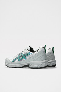 Sneakers from ASICS x Hidden NY. Made from white ripstop mesh with metallic turquoise ASICS stripes. Features a front lace-up fastening shoelaces with silicone tips, branded heel counter, pull-tab at the heel, padded ankle, and perforated detailing. Logo patches on the tongue and side, with a rubber toecap and round toe. GEL™ technology in the rearfoot and a tread pattern designed specifically for trail grip. Map graphic printed on the insole. Details White and green sneakers. Textile and synthetic upper. Textile lining and insole. Rubber outsole.ART. NO: 1203A778-100 Size & fit Men's sizes. US 10 equals UK 9 / EU 44 / 28 cm.