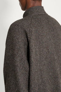 Jacket from Auralee. Made from a lightweight tweed blend of wool, alpaca, and silk, offering a soft, lofty texture with warmth and a refined, luxurious finish. Fully lined, with a collar with button closure and slanted hand pockets with flap and button closure. Details Brown and grey jacket. Made in Japan from 60% wool, 25% alpaca and 15% silk.ART. NO: A25AB03LS Size & fit Model wears a size 4 and measures 185 cm with a 83 cm chest.