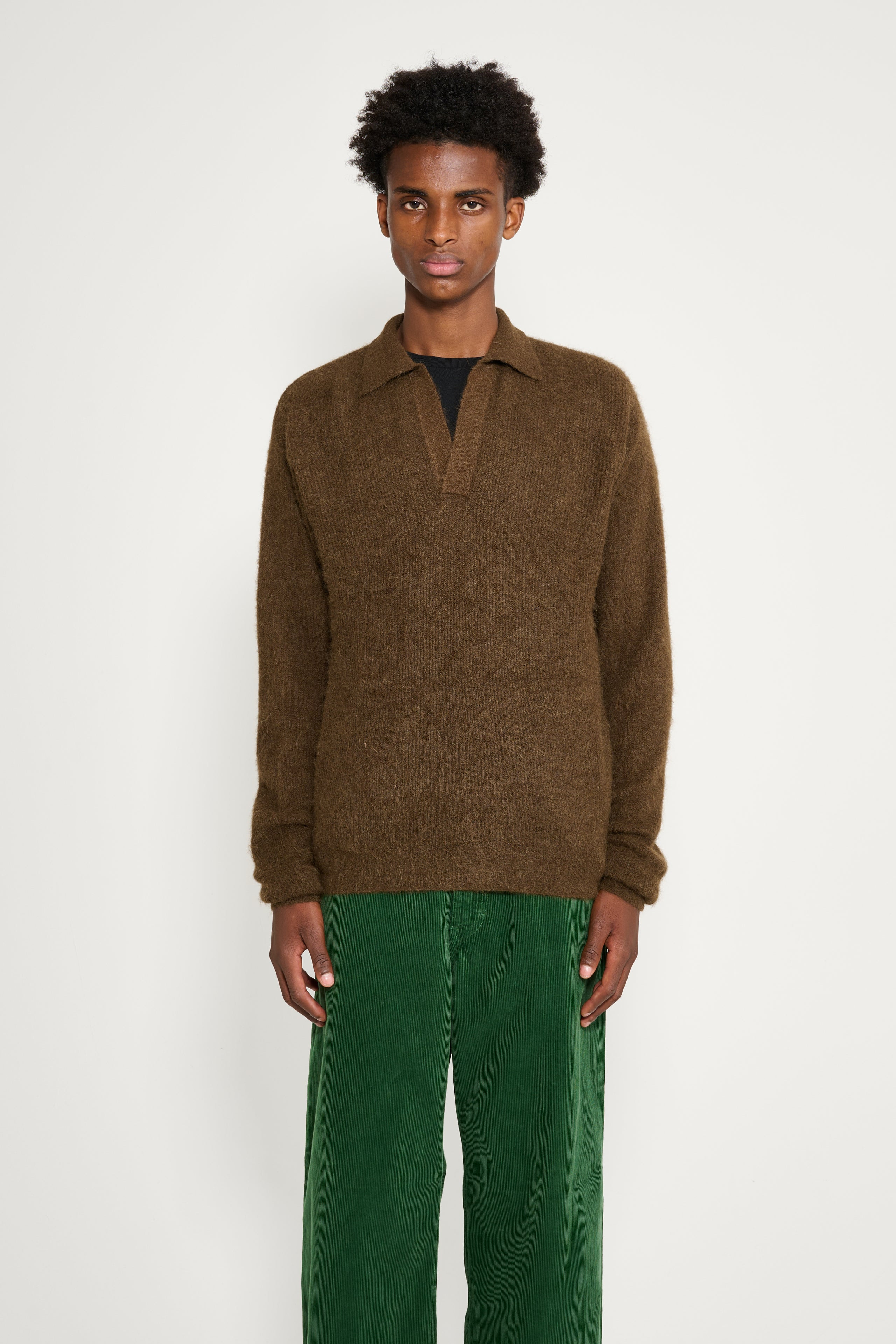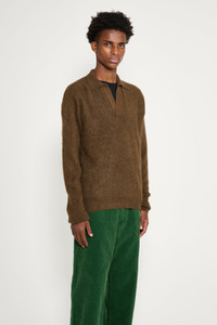 Knitted polo from Auralee. Made in Japan from rare baby Suri alpaca yarn blended with nylon for durability. The fine fibers provide natural softness and smoothness, creating a refined texture. Details Brown sweater. Made in Japan from 70% alpaca and 30% nylon.ART. NO: A25AP02AK Size & fit Model wears a size 4 and measures 185 cm with a 83 cm chest.