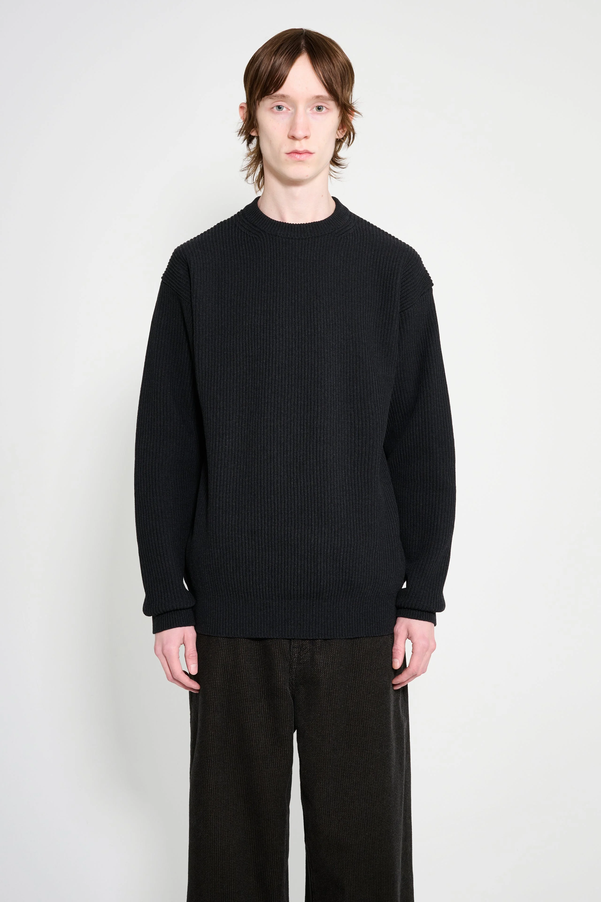 Knitted sweater from Auralee. Made in Japan from Super 160’s wool spun into worsted yarn and worked into a dense rib structure. The neckline is finished with a wide crew band, while the shoulders are dropped for an easy shape. Compact ribbing at the cuffs and hem contains the volume of the heavy knit. Details 100% wool.Made in JapanArt. no: A25AP02RK