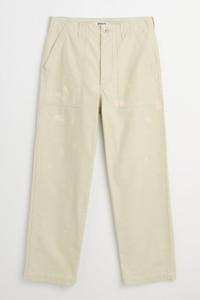 Pants from Auralee. Made in Japan from cotton satin woven with a full-bodied warp and textured weft for natural depth. Features slanted front pockets, two flap back pockets, and belt loops. The reverse is brushed for a soft, cozy feel, and each piece is individually treated with a bleaching process to create subtle, distinctive color variations. Details Ivory white pants. Made in Japan from 100% cotton.ART. NO: A25AP01BP Size & fit Model wears a size 3 and measures 185 cm with a 69 cm waist.