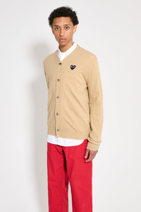 COMME DES GARÇONS PLAY SMALL HEART KNITTED CARDIGAN LIGHT CAMEL / BLACK