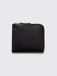 Wallet from Comme des Garcons Wallet. Zip opening with textile trims on two sides. Extra pocket on the inside with room for cards and similar. Gold tone foil printed logo on the inside. Details Black wallet. Made in Spain from 100% leather. Art. No: SA3100-800 ART. NO: SA3100-800 Size & fit Measures 11 x 9,5 centimeters.