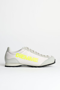 Sneakers from Diemme. Featuring a dense mesh upper with Italian suede details and a bold contrast Diemme side logo. Lace-up closure with metal eyelets and a rubber mudguard. Cow leather lining. Set on an extra-low, lightweight Vibram RGS Hiker sole. Comes with an extra set of laces for a choice between neutral and contrast colors. Details Silver and neon yellow sneakers. Made in Italy. Textile upper, lining and insole. Rubber outsole.ART. NO: DI25SPMOM-F04F011SIL Size & fit Men's European sizes.