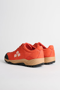 Shoes from Diemme. Made in Italy, featuring Italian suede upper with contrasting leather accents, full cow leather lining and a vegetable latex footbed. Lightly padded heel, collar and tongue. Debossed logo on tongue, round cord laces through metal eyelets, reinforced heel, molded rubber toe cap and contrast texture midsole with a Vibram® Rolling Gate System lugged traction outsole. Embroidered flowers on the lateral side. Comes with a branded dust bag and an extra pair of laces. Details Red, white, beige and black sneakers. Made in Italy. Textile upper, lining and insole. Rubber outsole.ART. NO: DI25SPMOM-F06X055COR Size & fit Men's European sizes.