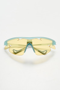 Sunglasses from District Vision x Post Archive Faction. Made in Japan with a lightweight 24g construction. Six-base blade-style frame designed to protect the eyes and enhance field of vision. Custom-shaped temples, adjustable hypoallergenic rubber nose pad, and temple tips with a titanium core. Fitted with a hand-sculpted, shatterproof D+ Sports lens offering 100% UVA/B protection. Designed for low light conditions such as sunrise and sunset. Details Green and yellow sunglasses. Made in Japan from 51% polycarbonate, 36% nylon, 7% rubber, 3% titanium and 3% stainless steel.ART. NO: DVG003-PAF Size & fit Front measures approximately 17.5 cm across and 5 cm at the highest point. Arms measure approximately 13 cm.