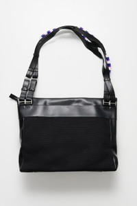 Shoulder bag from Kiko Kostadinov. Made from buffed calfskin and BCI-certified cotton canvas. Designed with a beaded trim on the adjustable crossbody strap and a zip pocket at the front. Includes a patch pocket at the back and a zip closure at the foldover top. Interior features a padded laptop compartment with twill lining. Details Black bag from Kiko Kostadinov. Made in Portugal from calf leather and cotton canvas. Metal and plastic details.ART. NO: KKAW24BG01-105 Size & fit Measures.