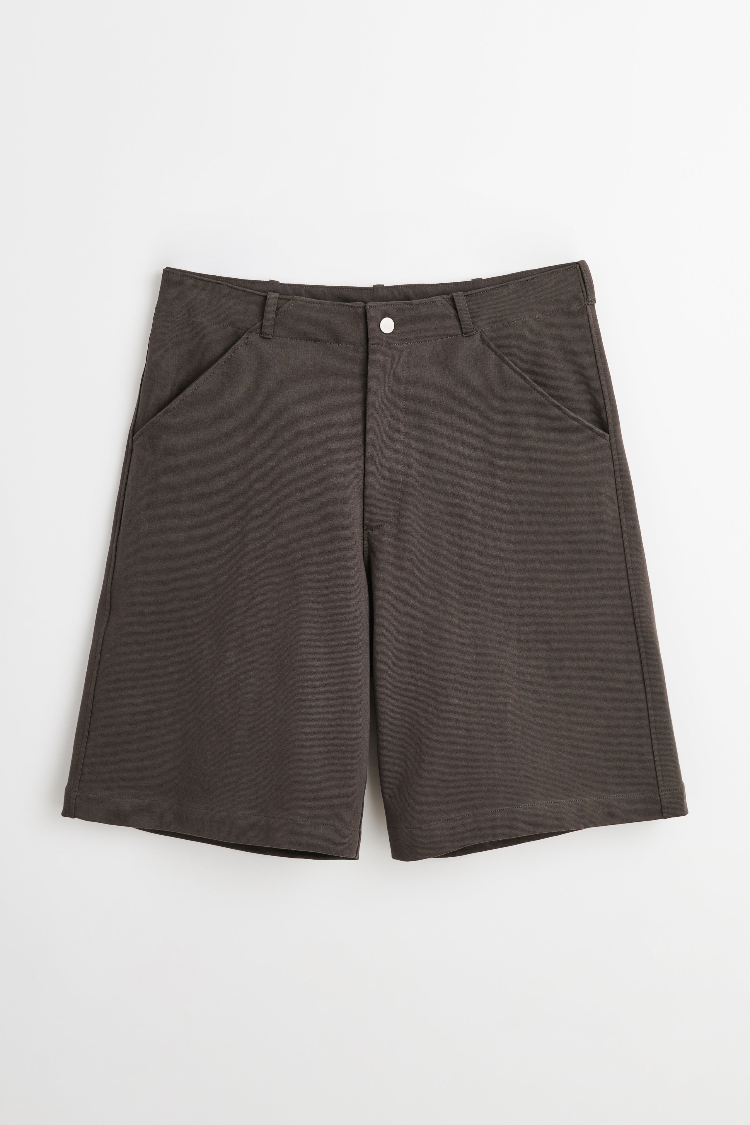 Shorts from Lady White Co. Made in the USA from preshrunk American heavyweight cotton jersey for a soft yet substantial hand. Designed with functional belt loops at the waist, Waldes zipper fly and snap button closure, and two slant front pockets. Finished with two patch pockets at the back and clean double-needle stitching throughout. Details Dark taupe shorts. Made in USA from 100% cotton and silver tone metal hardware with a matte finish.ART. NO: LW1150 Size & fit Wide, knee length shorts with a relaxed fit. Model wears a size Medium and measures 185 cm with a 69 cm waist.