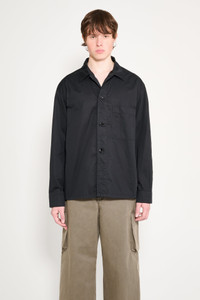 Pyjama Shirt from Lemaire. Made from lightweight cotton satin with a soft finish. Designed with a shirt collar, front button closure, chest patch pocket, long sleeves, straight buttoned cuffs and side slits. Details Black shirt. Made in Tunisia from 100% cotton.ART. NO: SH1198 LF1207 BK999 Size & fit Oversized cut. Model wears a size Medium and measures 185 cm with a 86 cm chest.