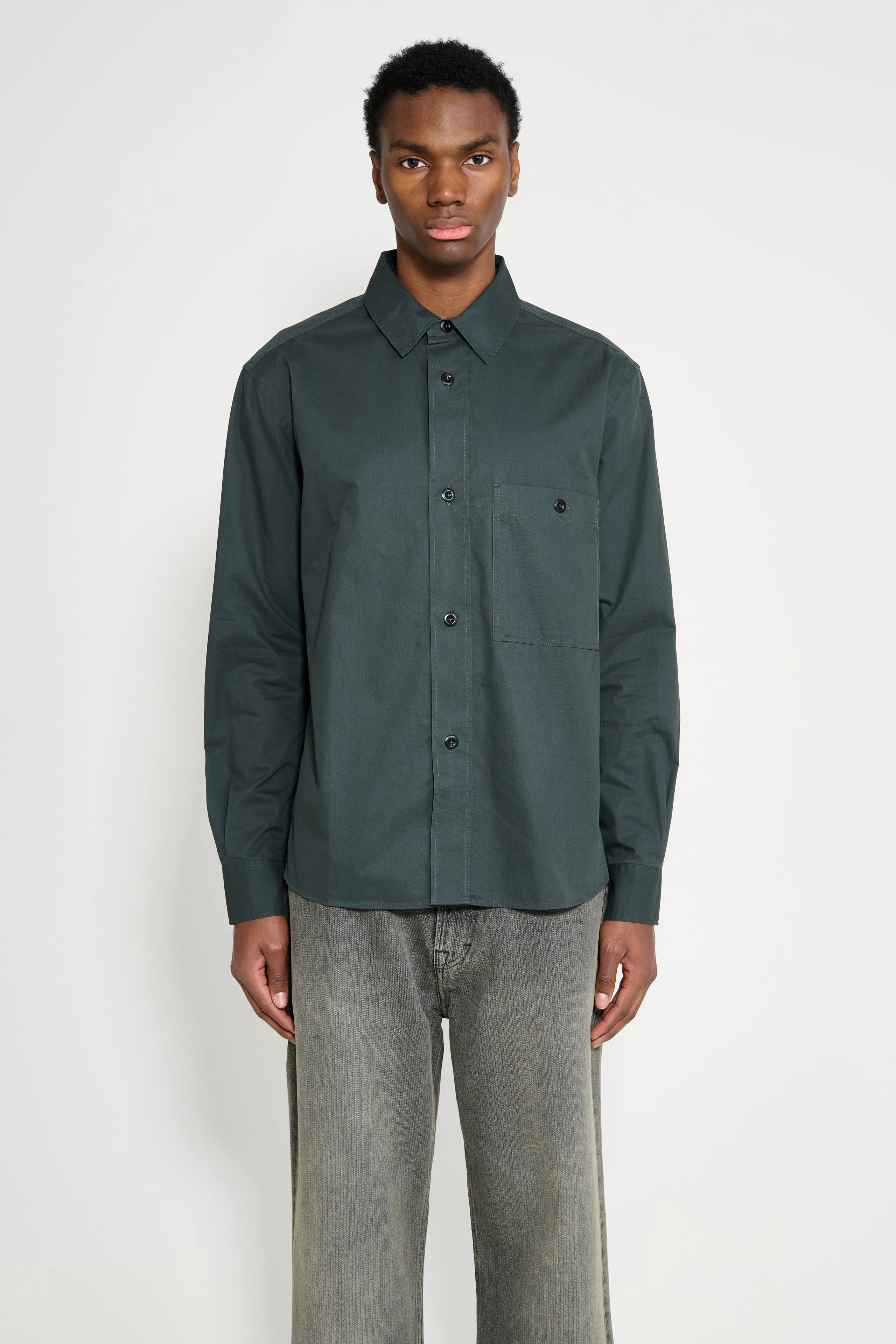 MARGARET HOWELL MHL OVERALL SHIRT LIGHTWEIGHT BRUSHED COTTON ALGAE