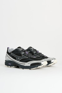 Sneakers from Mizuno. Featuring a breathable mesh upper with large mesh holes and synthetic overlays, rounded laces through lace holders and cut-out eyelets, and a padded collar and tongue. Lightweight, shock-absorbing foam midsole with Wave technology. Mizuno Runbird logo on the side, rubber logo on the tongue and print branding details at the heel. Rubber outsole. Details Black, silver and purple sneakers. Made in Vietnam. Textile and synthetic upper. Textile lining and insole. Rubber outsole.ART. NO: D1GA2515 01 Size & fit Listed in Men's sizes. Men’s US 10 equals UK 9 / EU 43.