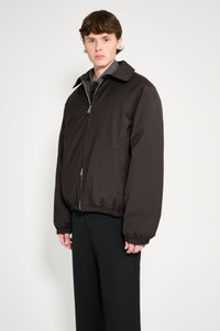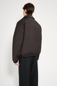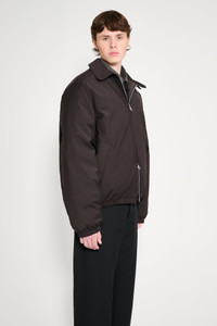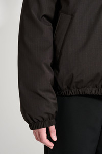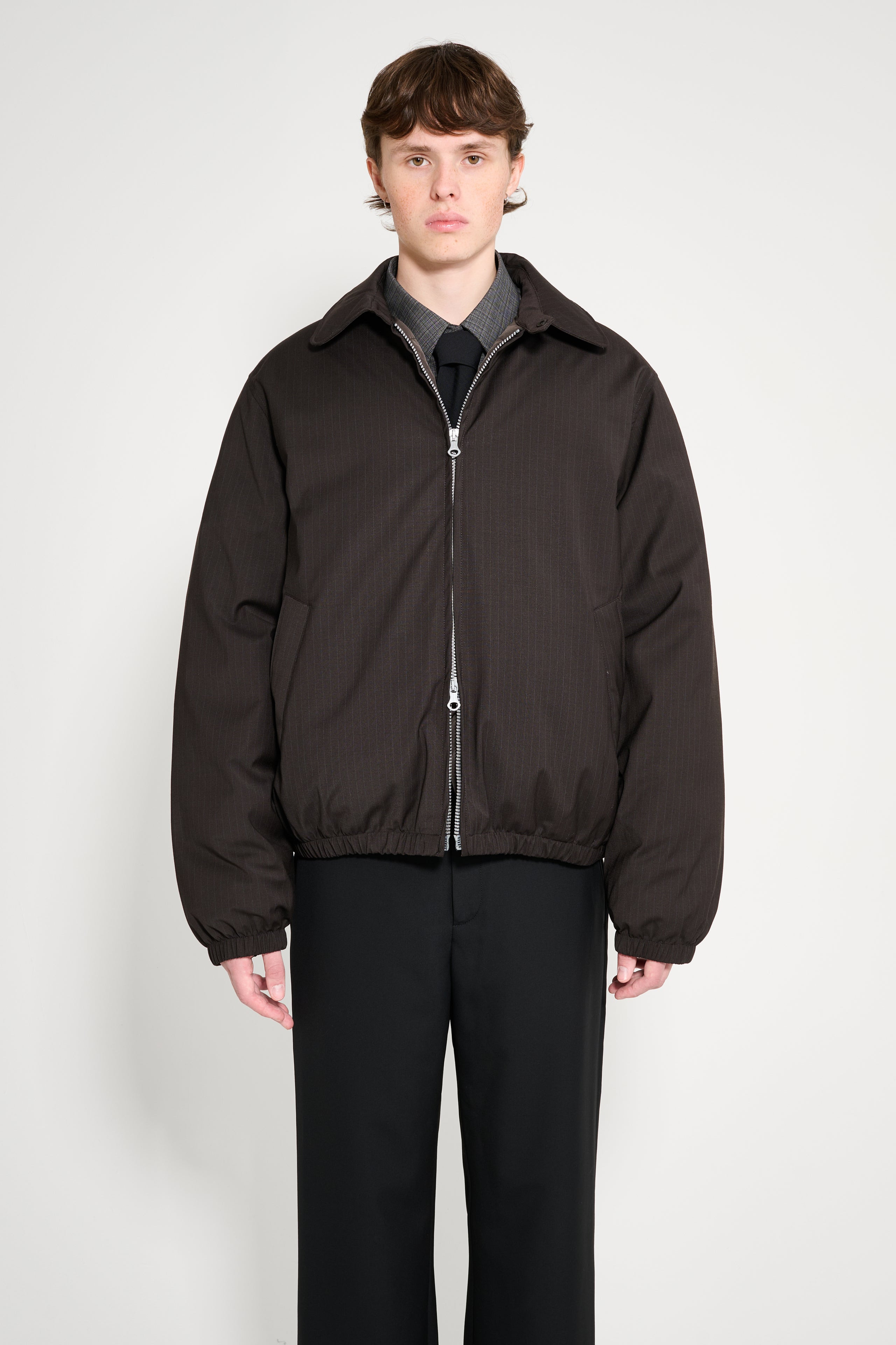 Jacket from Our Legacy. Features a water-repellent membrane, duck down and recycled polyester filling, and a contrast stripe design. Includes a classic collar with snap fastening, two-way zip closure, welt pockets with hidden snap closures, elasticated hem and cuffs, and a fully lined interior with an inside welt pocket and zip closure. Details Dark brown jacket. Made in Portugal from 54% polyester, 44% wool, and 2% elastane.ART. NO: M4251BC Size & fit Boxy, wide fit. Model wears a size 48 and measures 185 cm with a 86 cm chest.