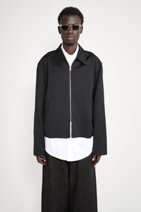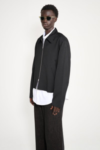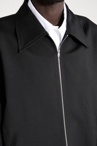 Jacket from Our Legacy. Made from Italian fine grain worsted yarn wool with full cupro lining. Straight point collar and a two-way silver tone RIRI-zip closure. Angled jet pockets at the sides. Unbuttoned cuffs and straight cut cropped hemline. Details Black jacket. Made in Portugal from 100% virgin wool.ART. NO: M2230MBW Size & fit Boxy cropped fit jacket. Model wears a size 50 and measures 190 cm with an 85 cm chest.