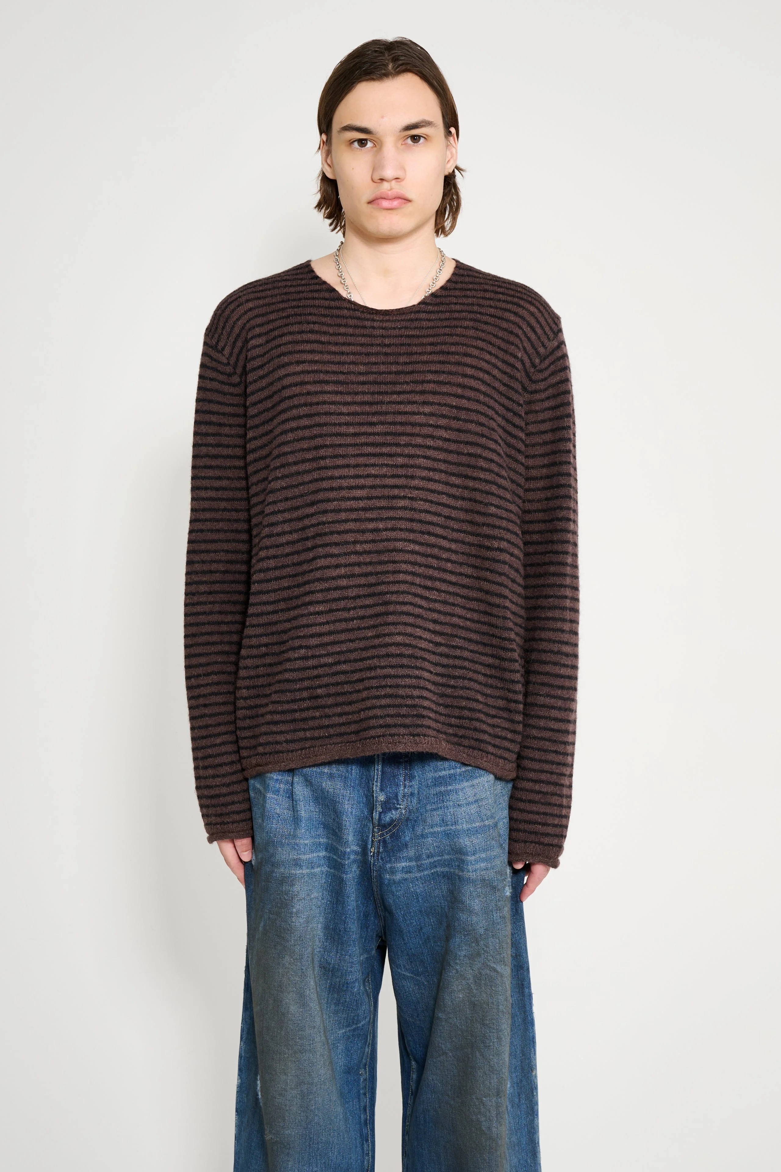 Sweater from Our Legacy. Knitted in Italy from a striped alpaca blend with RWS wool, recycled polyamide, and polyamide. Designed with a relaxed fit and features a fashioned neckline with rolling edges, French shoulders, and reverse stitch detailing along the side seams. Finished with rolling cuffs and hem. The knit structure allows the garment to expand and shape naturally with wear. Details Brown and black sweater. Made in Portugal from 55% alpaca, 30% polyamide and 15% wool.ART. NO: M4253RD Size & fit Relaxed fit. Model wears a size 48 and measures 183 cm with a 86 cm chest.