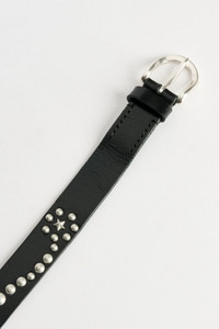 Details Black belt. Made in Portugal from British leather, with metal studs and a metal pin buckle.ART. NO: A4228SB Size & fit Adjustable size. Width 3.5 cm. Lengths 70, 80, 90, or 100 cm to the middle hole, including buckle.