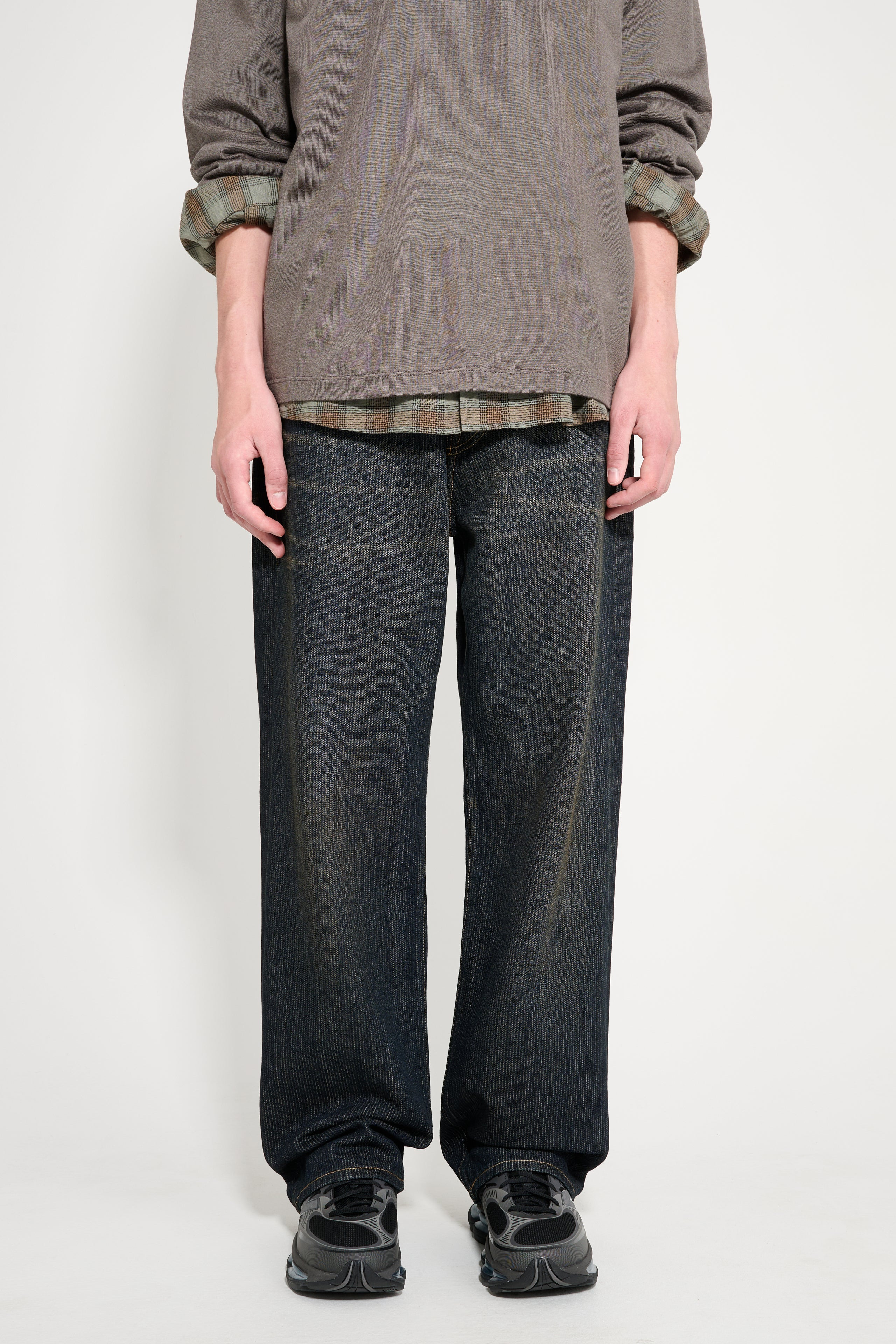 Jeans from Our Legacy. Made from a washed and vintage-inspired Italian chain twill fabric. Features five pockets with reinforced back pockets, button fly, YKK zipper closure, belt loops, metal rivets, and an Our Legacy rubber logo patch on the back. Details Blue jeans. Made in Portugal from 100% Italian cotton.ART. NO: M4255TC Size & fit Relaxed fit with wide straight legs. Model wears a size 30 and measures 185 cm with a 67 cm waist.