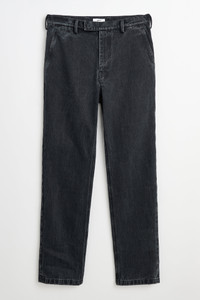 Jeans from Rier. Made in Italy from over-dyed denim with a washed, slightly distressed finish. Features a hidden zip and metal clasp closure secured under a flap of the waistband. Designed with slanted hand pockets, back pockets and belt loops. Details Black jeans. Made in Italy from 100% denim.ART. NO: DNM25 DNM – DENIM Size & fit Relaxed fit and slight taper. Model wears a size Medium and measures 185 cm with a 67 cm waist.
