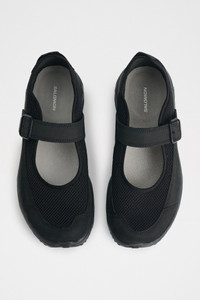 Shoes from Salomon. Mary Jane silhouette with a breathable 3D mesh upper and leather overlays. Debossed branding, lightweight EVA midsole and a Contagrip rubber outsole. Adjustable midfoot strap. Details Black sneakers. Textile and leather upper. Textile lining and insole. Rubber outsole.ART. NO: L47363200 Size & fit Listed in Men's sizes. US 10 equals UK 9,5 / EU 44.