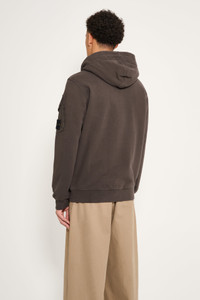 Hooded sweatshirt from Stone Island. Zip-up in garment-dyed brushed organic cotton fleece with hood lined in cotton jersey. Features standing welt hand pockets, internal pockets, bellows sleeve pockets with snap closures, elasticated ribbed cuffs and hem, and Stone Island badge on the left sleeve pocket. Details Black sweater. Made in Tunisia from 100% organic cotton.ART. NO: K2S156100009S0A20V0062 Size & fit Model wears a size M and measures 185 cm with a 83 cm chest.