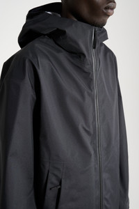 Jacket from Arc'teryx Veilance. Waterproof and breathable GORE-TEX shell with low-profile StormHood™ and internal cord adjustment. Features a WaterTight™ full-length front zip, taped seams, zippered in-seam hand pockets, and a hidden laminated exterior pocket with internal zip compartment. Articulated construction for mobility. Details Black jacket. Made from 100% nylon.ART. NO: X000009479 002291 Size & fit Model wears a size M and measures 186 cm with a 95 cm chest.