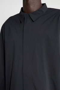 Overshirt from Arc'teryx Veilance. Made from breathable Teslin™ fabric, a nylon and elastane blend. Features ultrasonic welded seams and a DWR (Durable Water Repellent) finish. Designed with a concealed zip-front placket with Cobrax snap, articulated patterning, hidden front snaps and a moisture-resistant outer face. Finished with shirt cuffs with invisible snaps and sleeve vents. Details Black overshirt. Made in Vietnam from 93% nylon and 7% elastane.ART. NO: X000009122 002291 Size & fit Regular fit. Model wears a size L and measures 190 cm with a 85 cm chest.