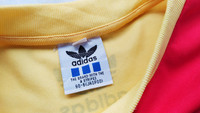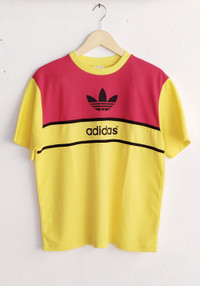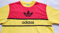 PLEASE SEE CAREFULLY THE MEASUREMENT BELOW !!! BRAND : ADIDAS TRIFOIL SIZE ON TAG : FADED ARMPIT TO ARMPIT : 20, 6" INCHES COLLAR TO BOTTOMHEM : 26,1" INCHES COLOR : RED,YELLOW CONDITIONS : Good used vintage condition. No hole or stain. Please see more pictures for the details. >Please leave me your contact phone number,as the shipping company always need the phone number to help delivering. Payment : >Accept PAYPAL only. Shipping : >This item will be ship along with tracking Number after received a completed payment. >Please do not expect the item in mint condition unless stated. Its because vintage and used items may have sign of wear. > no returns/refunds so if you have any questions...feel free to ask. Thank you very much for your visit.