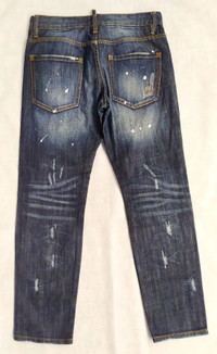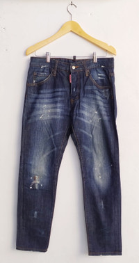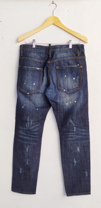 PLEASE SEE CAREFULLY THE MEASUREMENT BELOW !!! BRAND : DSQUARED2 SIZE ON TAG : 46 WAIST IN CIRCUMFERENCE DIAMETER : 34" INCHES. FRONT RISE : 11" INCHES. BACK RISE : 12,5" INCHES. THIGH : 18,5" INCHES. HIP : 42,5" INCHES. INSEAM : 27,4" INCHES. OUTSEAM : 36,6" INCHES. LEG OPENING : 18,5" INCHES IN CIRCUMFERENCE DIAMETER . CONDITIONS : Good used condition. 2 buttons in the closure is replaced. Please see more pictures for the details. > Please leave me your contact phone number,as the shipping company always need the phone number to help delivering. Payment : > I accept Offer. >Accept PAYPAL only. Shipping : >This item will be ship along with tracking Number after received a completed payment. >Please do not expect the item in mint condition unless stated. Its because vintage and used items may have sign of wear. > no returns/refunds, so if you have any questions...feel free to ask. Thank you very much for your visit