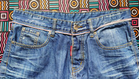 PLEASE SEE CAREFULLY THE MEASUREMENT BELOW !!! BRAND : DSQUARED2 SIZE ON TAG : 34 WAIST IN CIRCUMFERENCE : 37" INCHES FRONT RISE : 9,4" INCHES. BACK RISE : 12,4" INCHES. INSEAM : 8,4" INCHES OUTSEAM : 18" INCHES THIGH : 18,4" INCHES LEG OPENING : 18,1" INCHES in circumference diameter. MATERIAL : DENIM CONDITIONS : Good used condition. Please see more pictures for the details. > Please leave me your contact phone number,as the shipping company always need the phone number to help delivering. >Please do not expect the item in mint condition unless stated. Its because vintage and used items may have sign of wear. > no returns/refunds, so if you have any questions...feel free to ask. Payment : >I accept offer. >Accept PAYPAL only. Shipping : >This item will be ship along with tracking number after received a completed payment. Thank you very much for your visit.