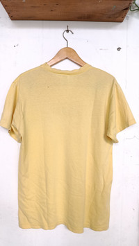 This vintage rare 90s SLAP Skateboard Magazine T-shirt by Anvil features a graphic print with a pro skater character design. Made in the USA, this yellow shirt is crafted from lightweight cotton material and has a round neckline, short sleeves, and a regular fit. Perfect for fans of skateboarding, streetwear, punk, and retro styles, this T-shirt is a must-have for those looking for a unique piece of 90s nostalgia with a touch of American flair. Hand wash only to preserve its vintage charm.