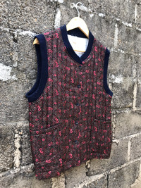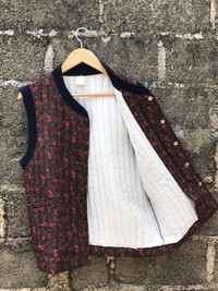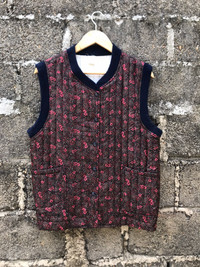 Vintage 90s Ajrakh Block Button Quilted Vest