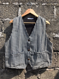 (AA7)- Vintage Black and White Plaid Button Vest You can ask me anything before buying. This is used clothing. Please dont ever expected it to be like new or in pristine condition *attention: vtg item may have some of defect like pin,hole,stain and fade. Please take fully attention to that items. Im trying to give best description to that item. Do not rely on tag size as pre-worn items may have been altered, stretched or shrunk & vintage sizes do not directly translate the modern sizes.The best way to ensure a correct fit is to compare our measurements with the measurements of a similar item that you know fits you well. ❗Manual measurement 📌Armpit to armpit 21.5 inches 📌Length (shoulder to down) 22.5 inches 📌size on tag is “L” -Please pay immediately after offer accepted -100% authentic,all sales final,no refunds or return -make sure your Paypal is ready to make negotiation -no refunds for wrong size so please check ,ensure and compare to something your own before buying Standard shipping $10 -with tracking number -England,australia 1-2 weeks -usa 2-3week -europe 3-4 week -canada minimal 3week or more -rest of the world depend on your post Express shipping (DHL) 3-6 day worldwide (3-4day as usual) Price depend on weight minimal price of shipping is $30