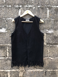 Vintage Ki-Face Black Velvet Fringe Vest -M