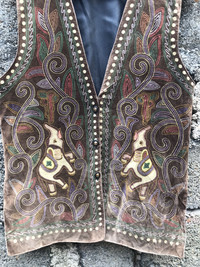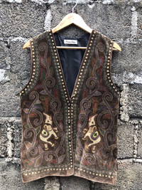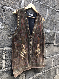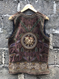 (AA6)- Vintage Traditional Indian Elephant Velvet Vest Jacket You can ask me anything before buying. This is used clothing. Please dont ever expected it to be like new or in pristine condition *attention: vtg item may have some of defect like pin,hole,stain and fade. Please take fully attention to that items. Im trying to give best description to that item. Do not rely on tag size as pre-worn items may have been altered, stretched or shrunk & vintage sizes do not directly translate the modern sizes.The best way to ensure a correct fit is to compare our measurements with the measurements of a similar item that you know fits you well. ❗Manual measurement 📌Armpit to armpit 19 inches 📌Length (shoulder to down) 26.5 inches 📌size on tag is “-” -Please pay immediately after offer accepted -100% authentic,all sales final,no refunds or return -make sure your Paypal is ready to make negotiation -no refunds for wrong size so please check ,ensure and compare to something your own before buying Standard shipping $10 -with tracking number -England,australia 1-2 weeks -usa 2-3week -europe 3-4 week -canada minimal 3week or more -rest of the world depend on your post Express shipping (DHL) 3-6 day worldwide (3-4day as usual) Price depend on weight minimal price of shipping is $35