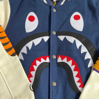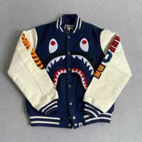A Bathing Ape Bape Shark Leather Sleeve Varsity Jacket Size M Brand new Global shipping All sales are final, no returns 20240312-04