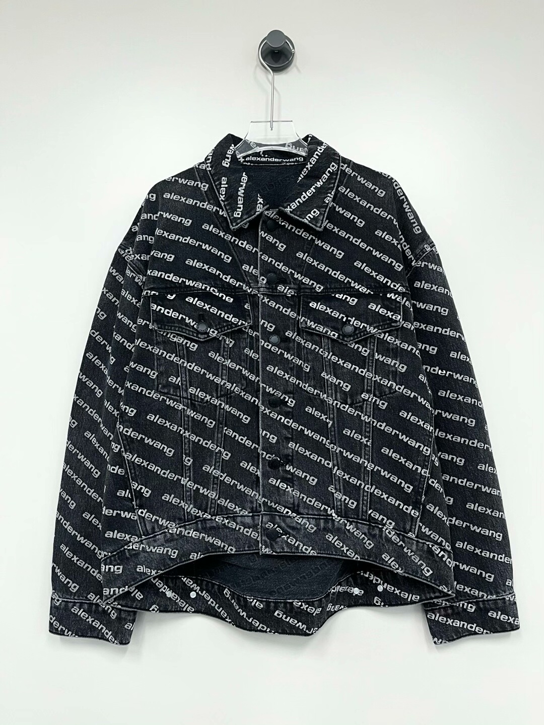 Alexander Wang black denim jacket with all-over graphic print.