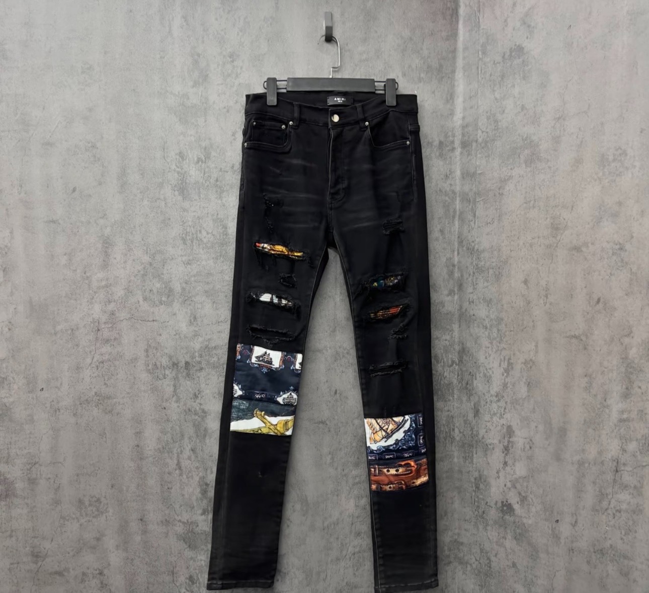 Amiri's new limited edition patchwork pattern destroyed jeans